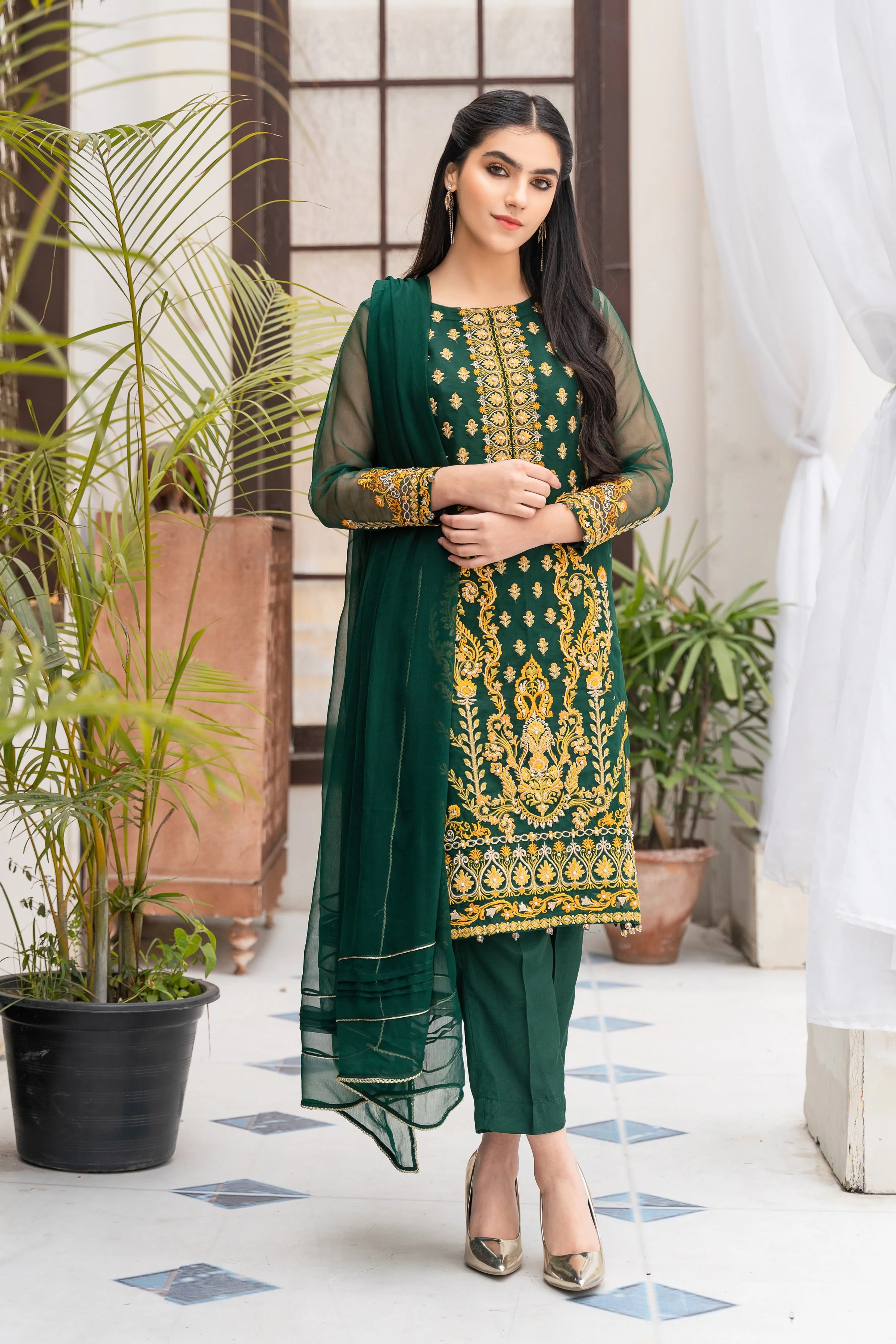 Organza shirt with heavy embroidery and beautiful embellishments